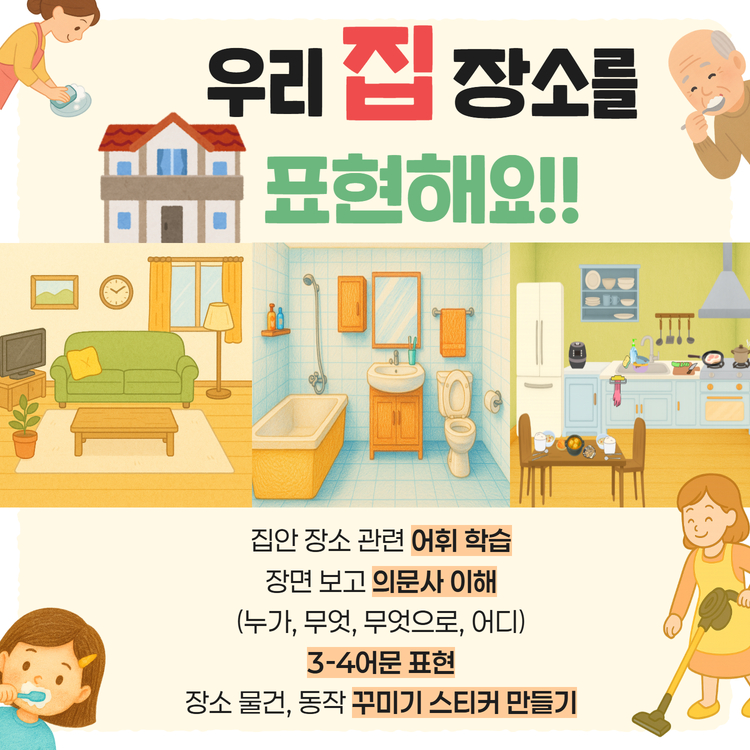 우리 집 장소를 표현해요!!_(집안 장소 관련 어휘, 동작어 학습, 표현, 의문사 이해, 장면 꾸미기) [베리쌤]