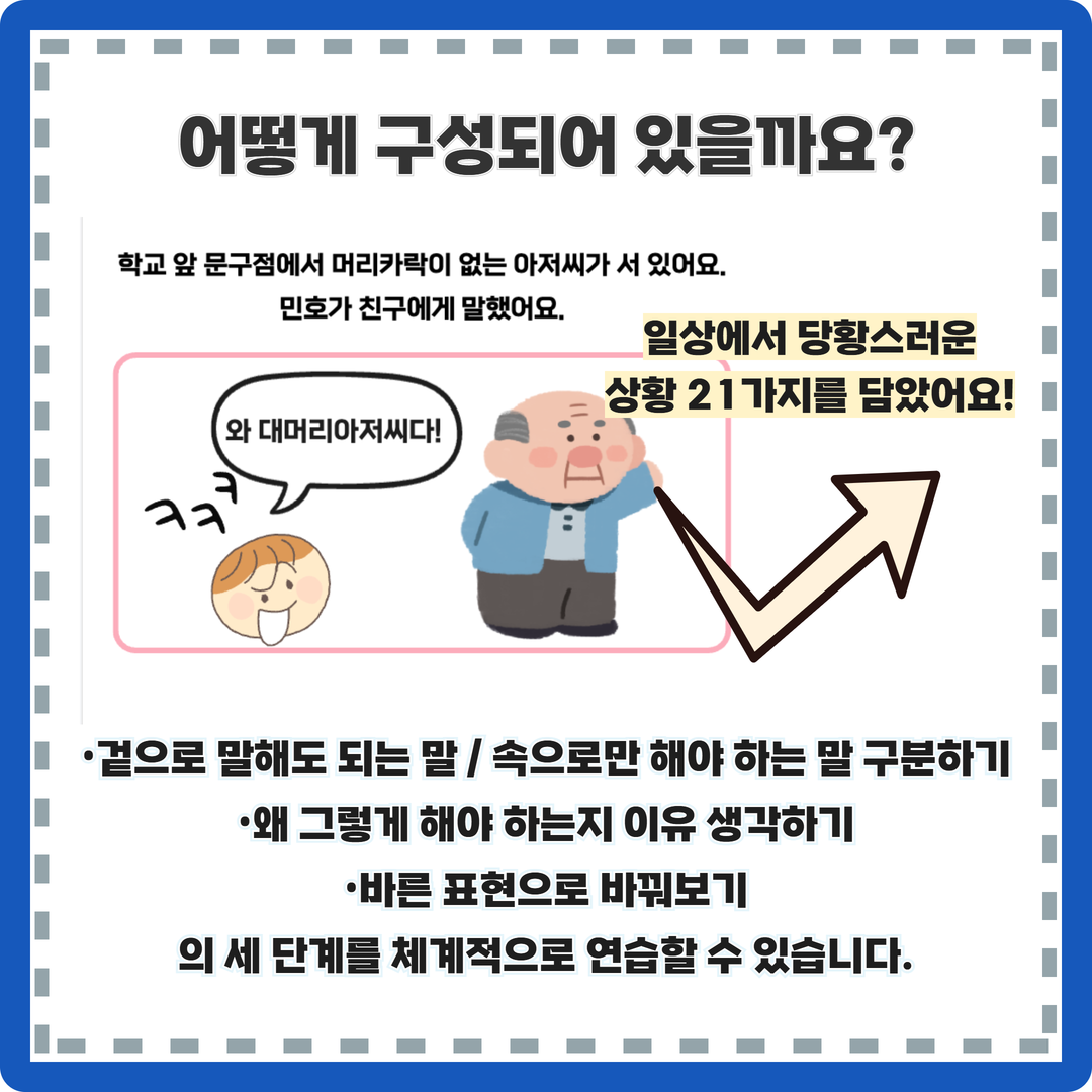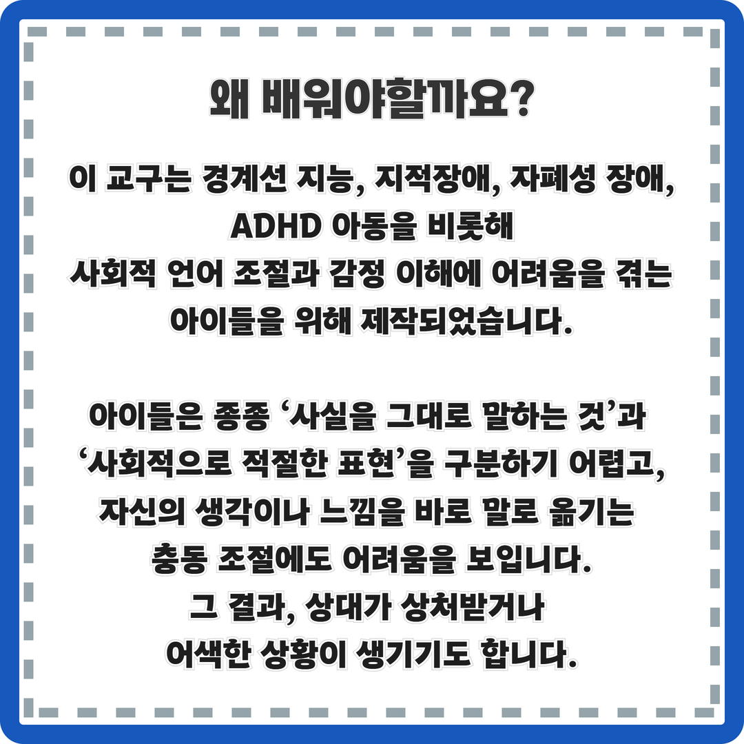 사회적 언어 조절과 감정 이해에 어려움을 겪는 아이들을 위해 제작되었습니다.