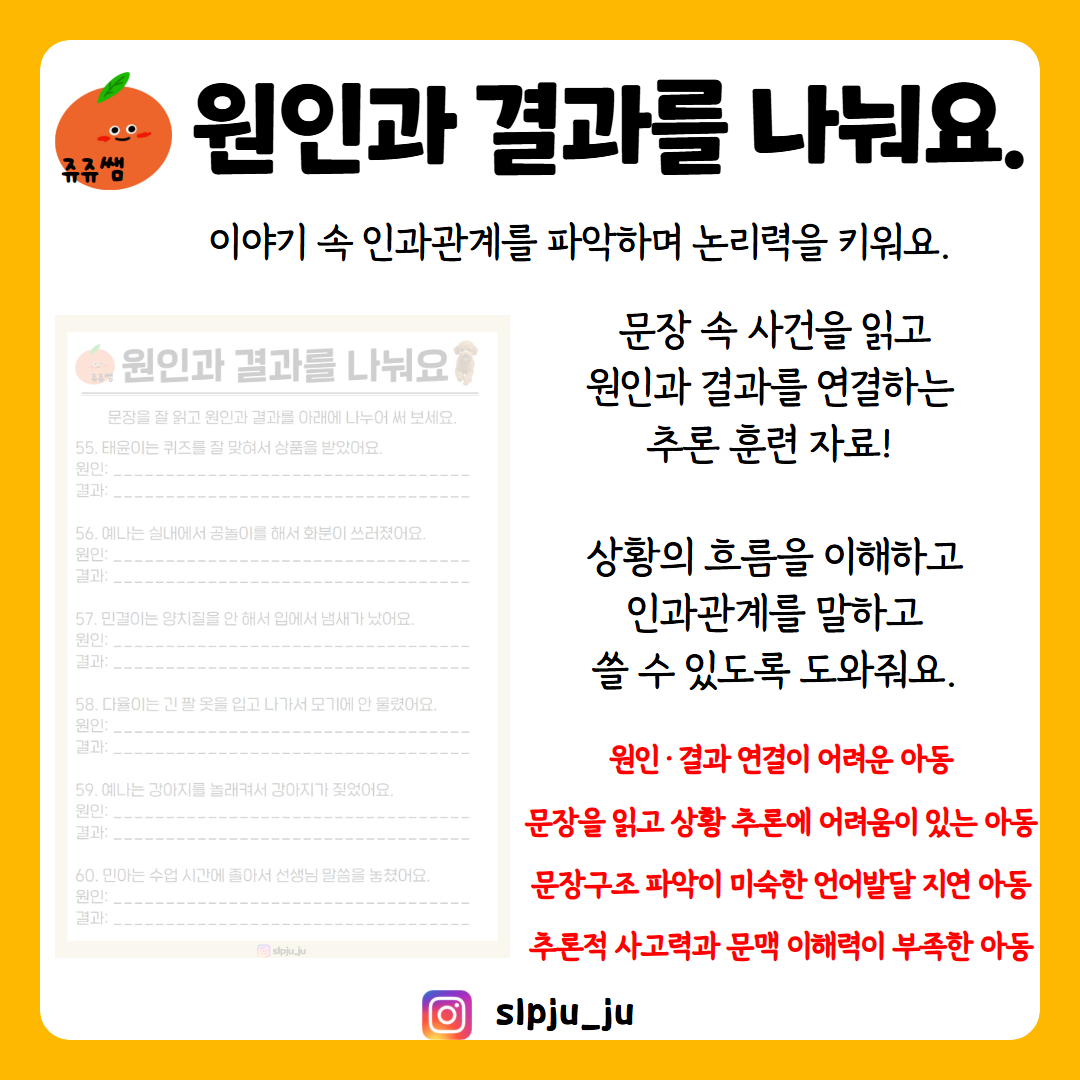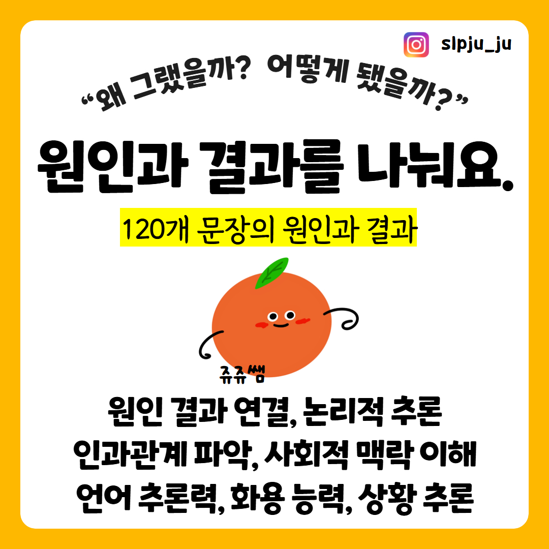 아이들이 스스로 인과관계를 파악하고, 말하고, 쓰는 연습을 하도록 도와줍니다.