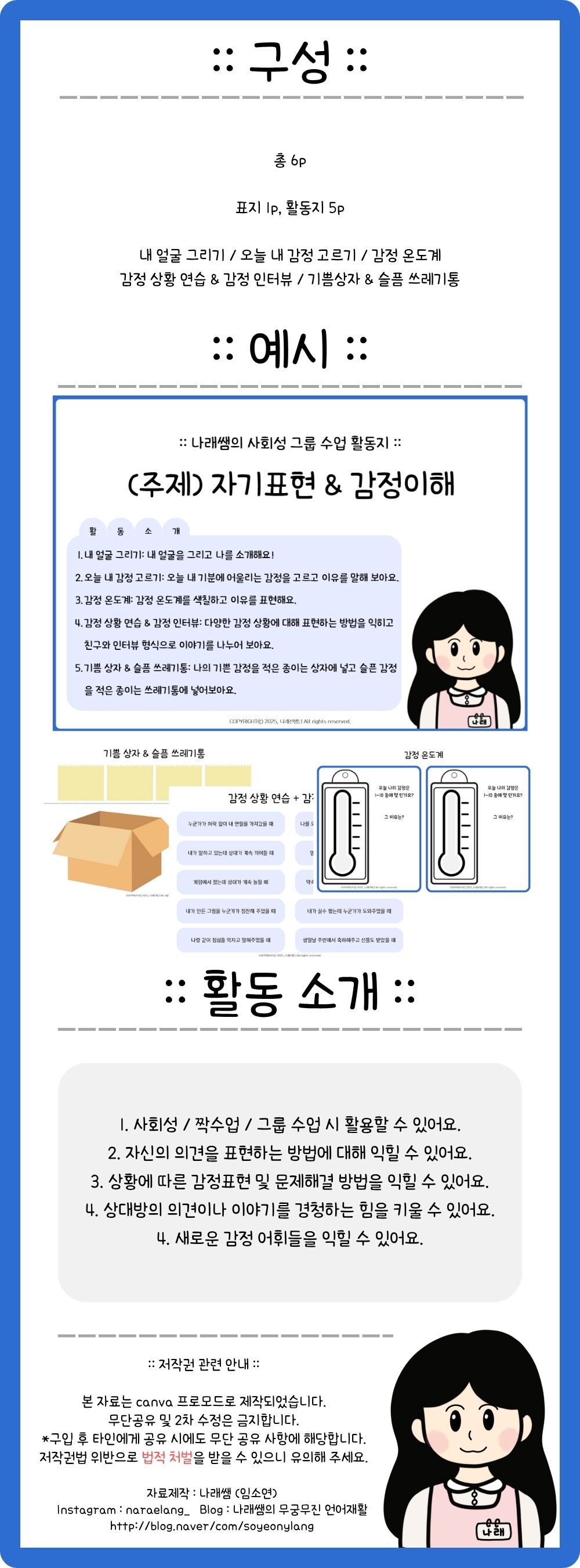나래쌤의 사회성 활동지 (주제) 자기표현 & 감정이해 [나래쌤]
