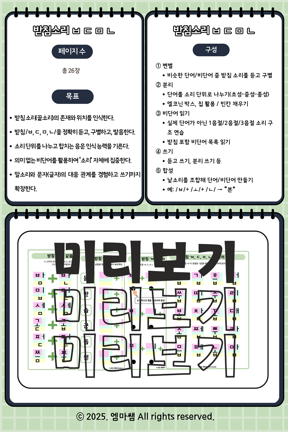 [한글]받침소리 ㅂㄷㅁㄴ [엠마쌤]