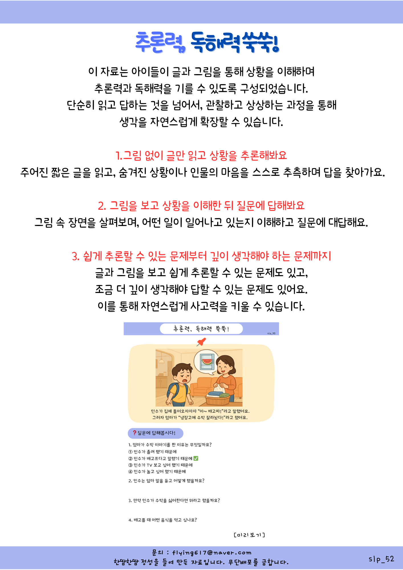 < 공지 & Tip❗ > ✔ 반드시 PDF 전용 프로그램으로 사용하여 파일을 열어주세요. ✔ 구매 자료는 마이페이지에서도 간편하게 다운이 가능합니다. ✔ 디지털 자료의 특성상 다운로드 이후 환불은 불가합니다. ✔ 저작권법에 위반되지 않도록 주의해 주세요. ✔ USB, 클라우드, 컴퓨터 등 두 곳 이상에 저장하시길 바랍니다. |