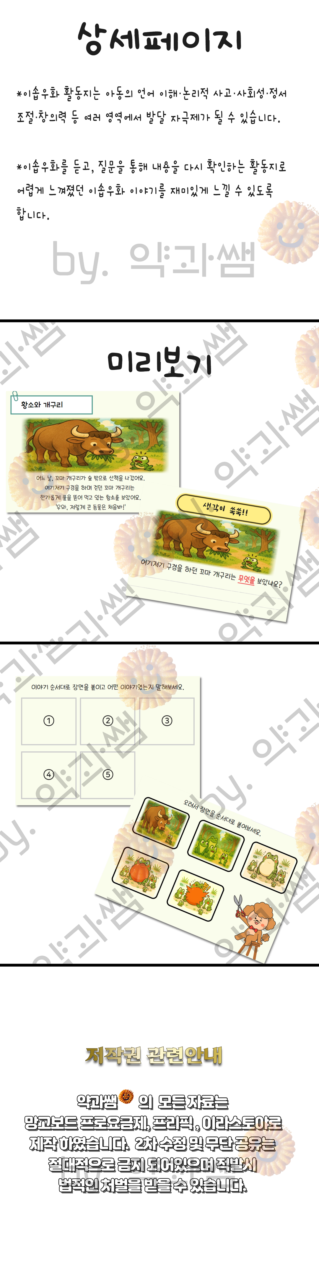 이솝우화 활동지:황소와 개구리(언어 이해·논리적 사고·사회성·정서 조절·창의력) [약과쌤]