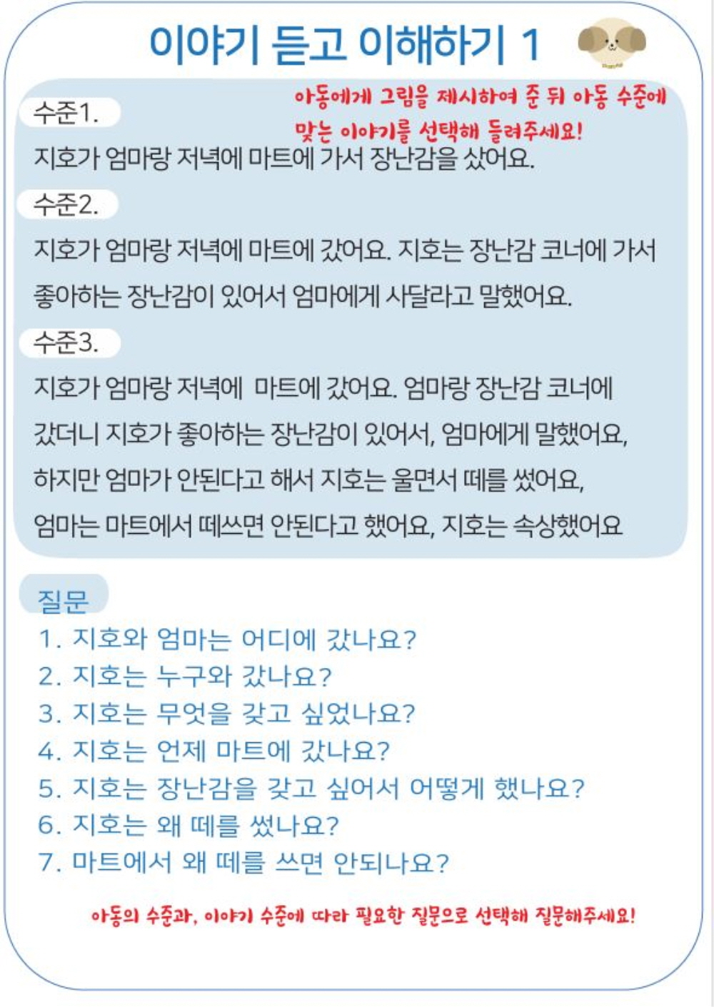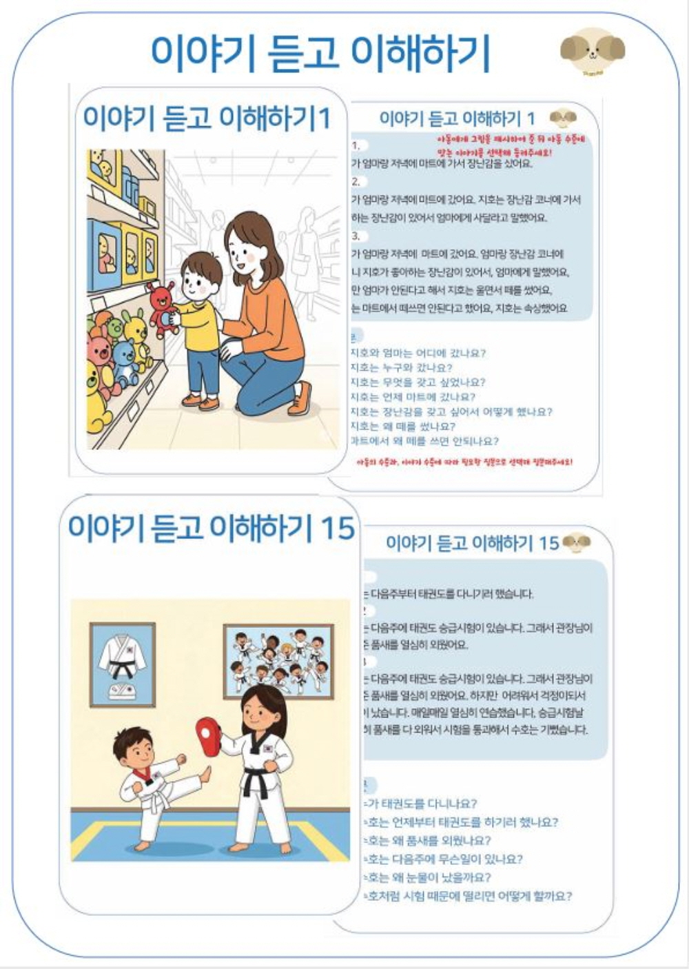 이야기 듣고 이해하기2편 (청각적 주의력, 듣기이해, 의문사 이해) [탐탐쌤]