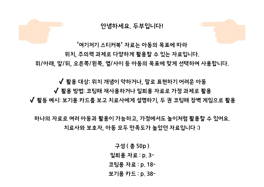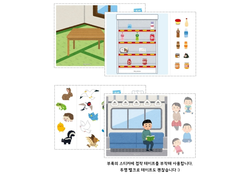 해당 자료는 스티커북처럼 놀이하며 위치 부사어를 즐겁게 익힐 수 있는 자료입니다.