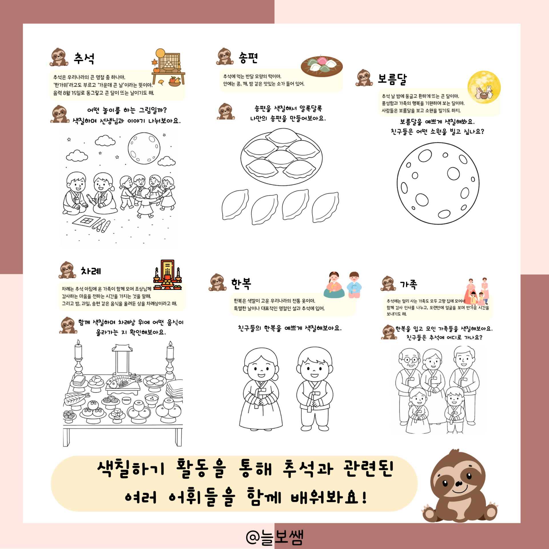 추석 관련 어휘 워크지 [늘보쌤]
