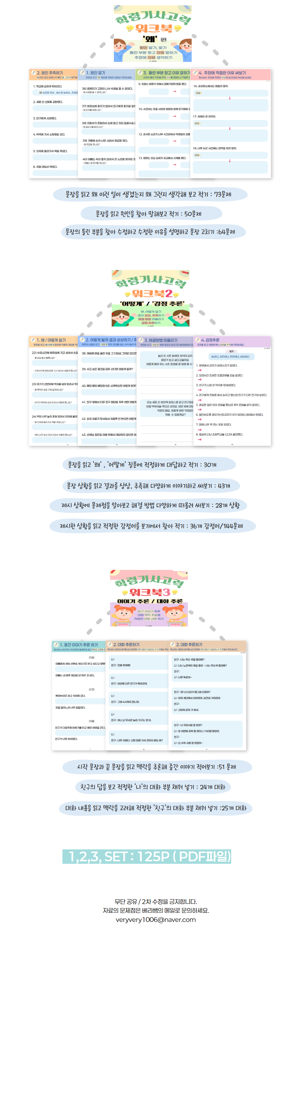 학령기 사고력 워크북 1,2,3_SET_왜/어떻게/이야기,감정,대화 추론 [베리쌤]