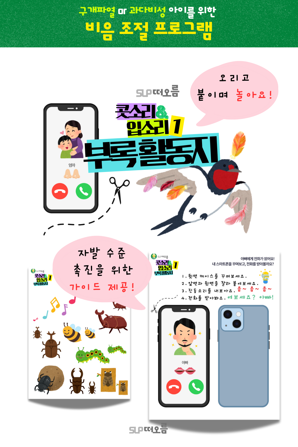콧소리(비음)가 많이 나는 아동, 구개파열 아동에게 유용하게 사용할 수 있는 비음-구강음 조절 프로그램 1탄의 만들기, 붙이기 부록입니다.