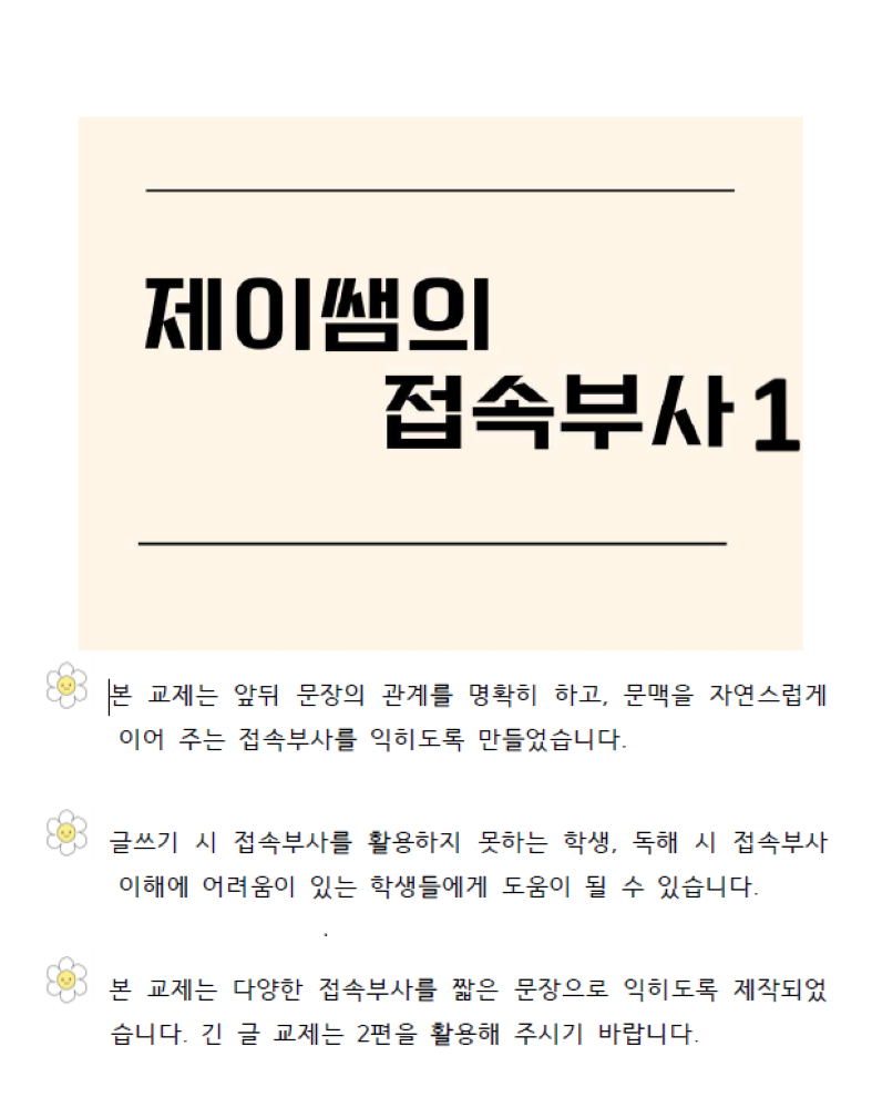 제이쌤의 접속부사 1 [제이쌤]
