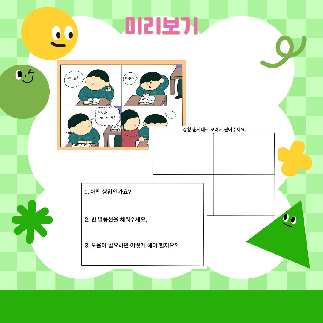 4컷만화 순서 맞추기/그림보고 대화나누기 [노랑통통쌤]