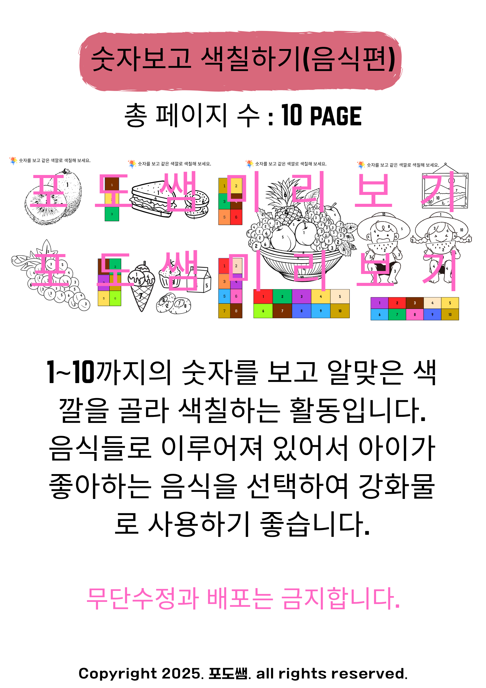 숫자보고 색칠하기(음식편) [포도쌤]