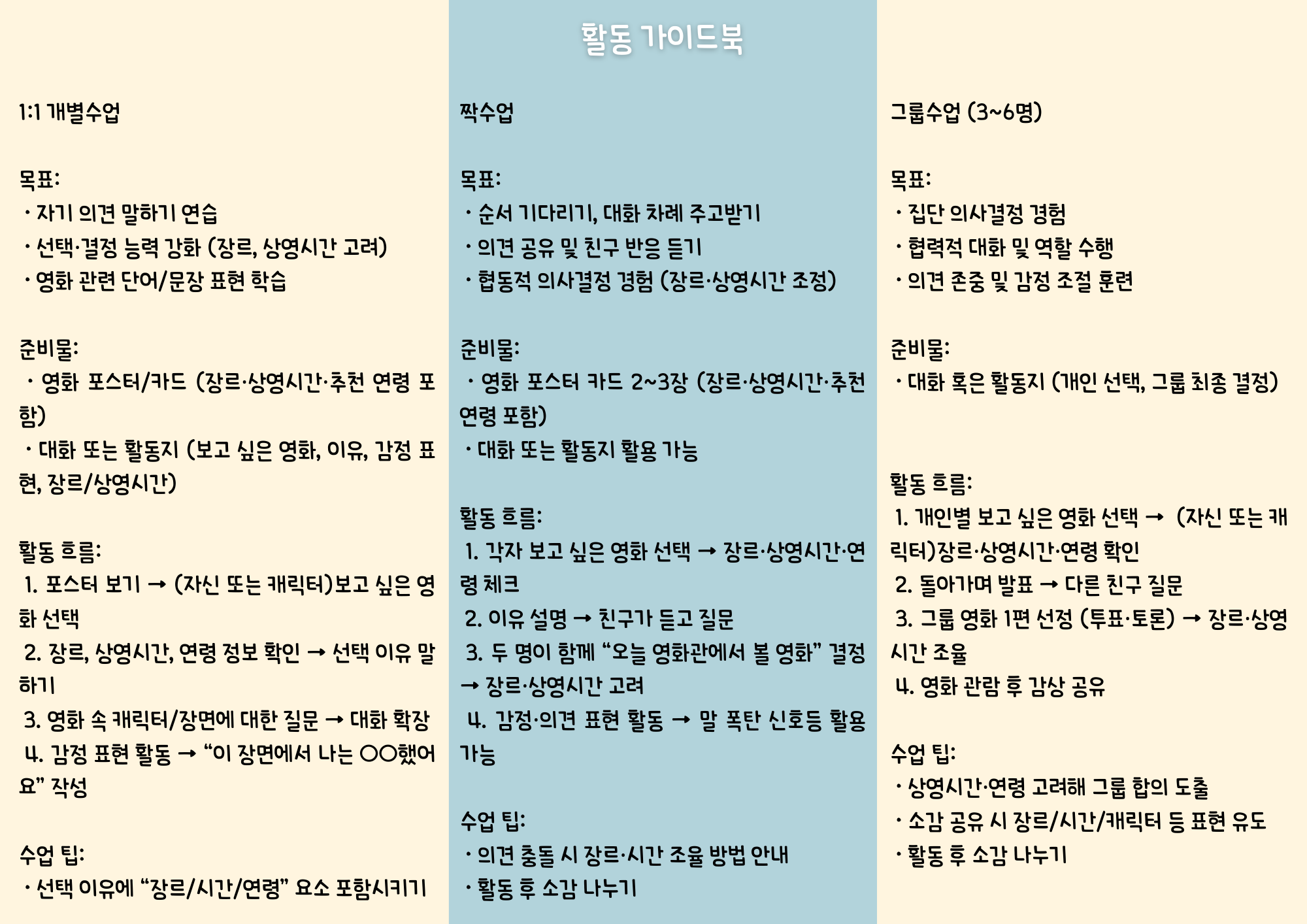 • 특징(성격·취향)을 근거로 삼아 영화 선택 이유를 설명한다.