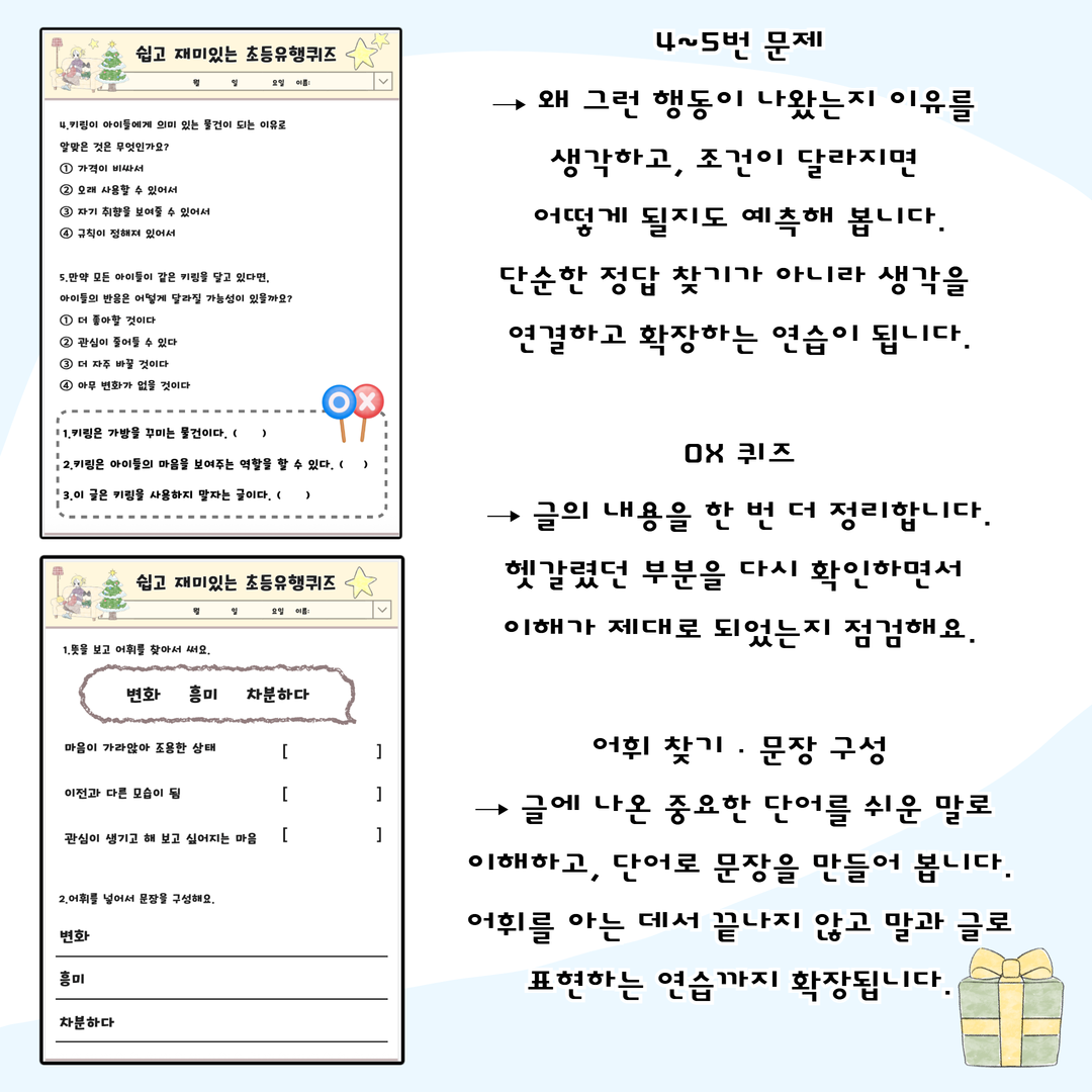 ✔ 문제집은 거부하지만 퀴즈는 즐기는 아이에게