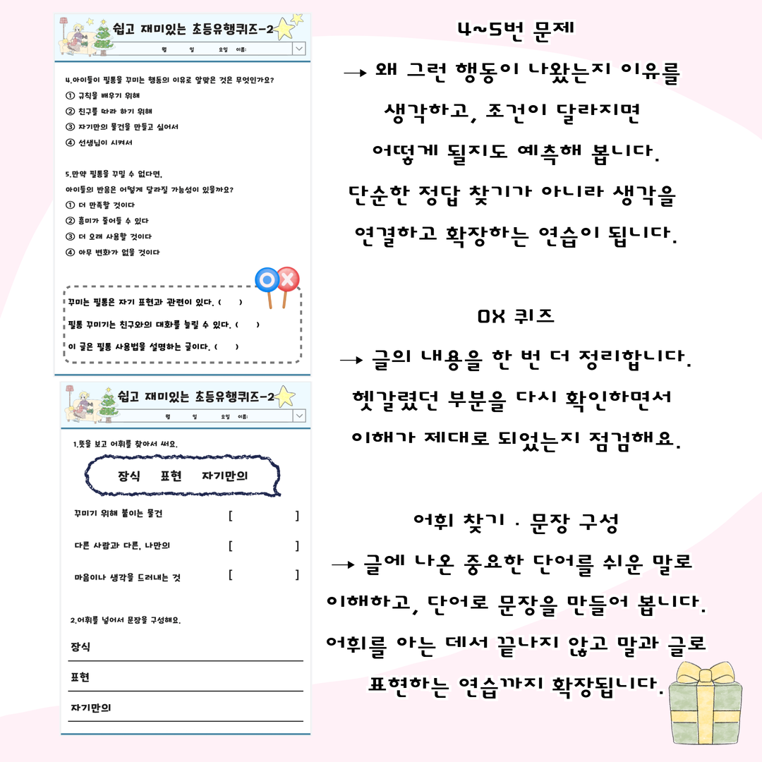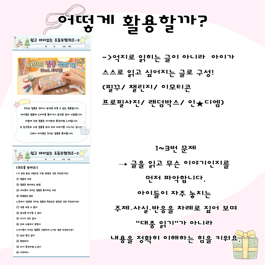 ✔ 문제집은 거부하지만 퀴즈는 즐기는 아이에게