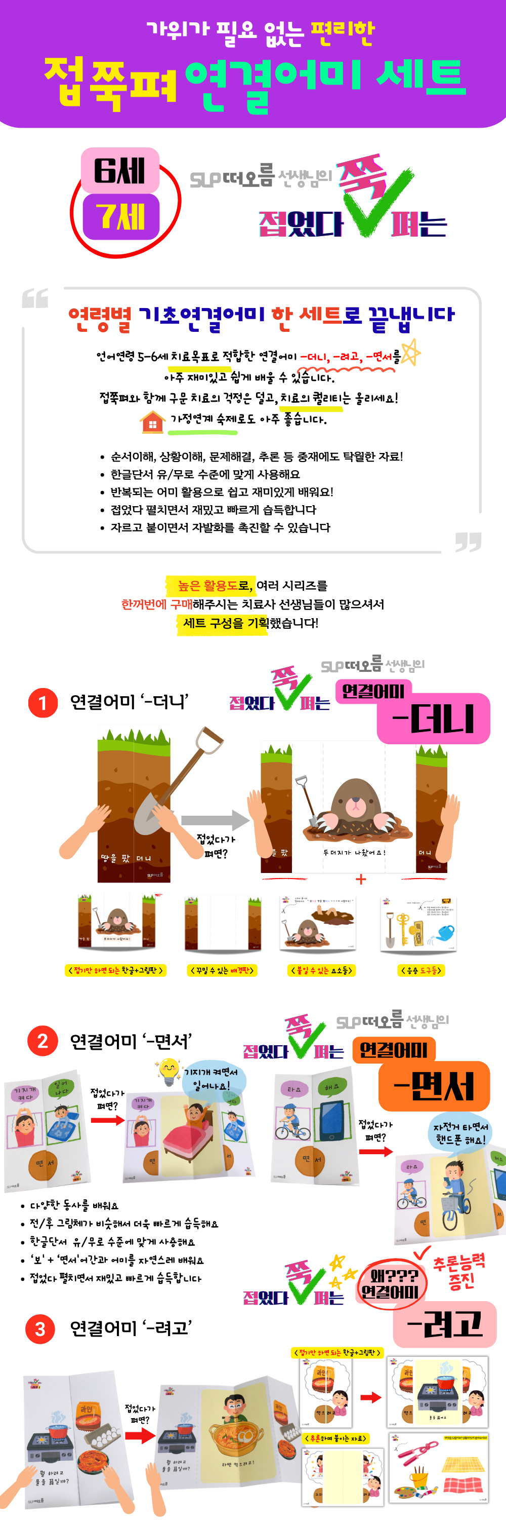 접쭉펴 연결어미 6, 7세 완성 세트 -더니/려고/면서 [떠오름]