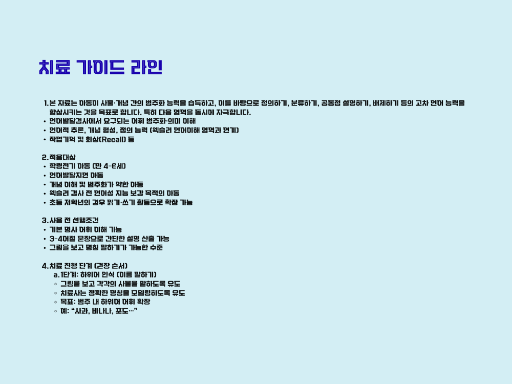 - 개념 이해 및 범주화가 약한 아동