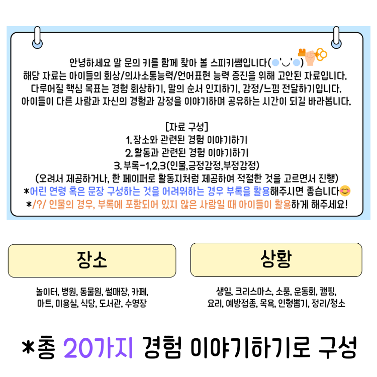 경험이야기하기(회상 기억력 증진, 경험 표현, 감정 표현, 의사소통, 문장 표현) [스피키쌤]