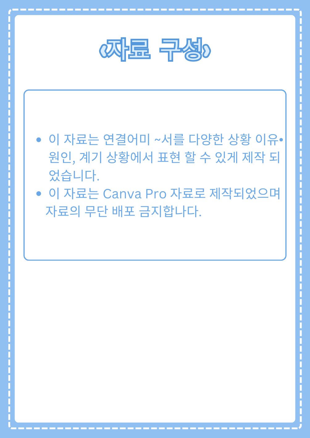 < 공지 & Tip❗ > ✔ 반드시 PDF 전용 프로그램으로 사용하여 파일을 열어주세요. ✔ 구매 자료는 마이페이지에서도 간편하게 다운이 가능합니다. ✔ 디지털 자료의 특성상 다운로드 이후 환불은 불가합니다. ✔ 저작권법에 위반되지 않도록 주의해 주세요. ✔ USB, 클라우드, 컴퓨터 등 두 곳 이상에 저장하시길 바랍니다. |