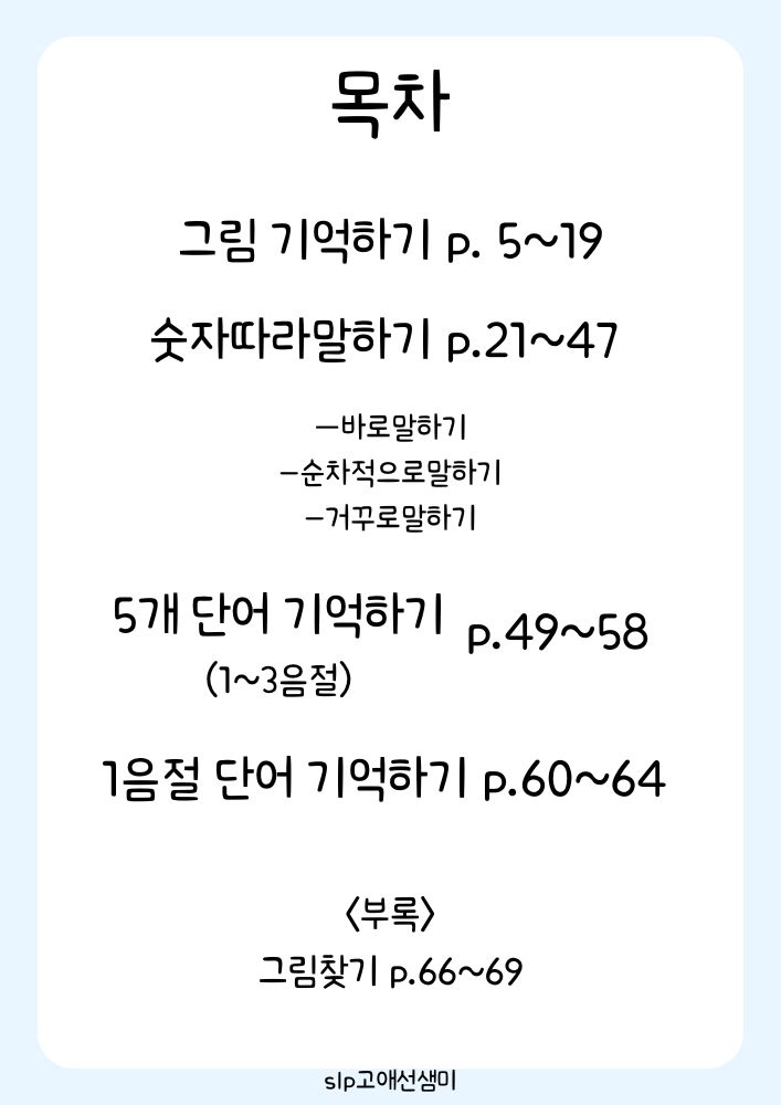 주의력&작업기억력 향상 프로그램 [slp고애선샘미]