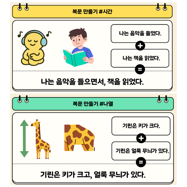 이어진 문장, 복문을 만들어보는 연습을 할 수 있도록