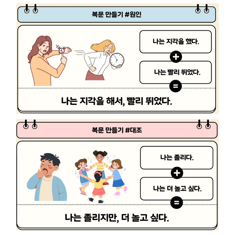 연결어미 사용해서 복문 만들자(시간,나열,원인,대조,조건,이어진문장) [스피키쌤]