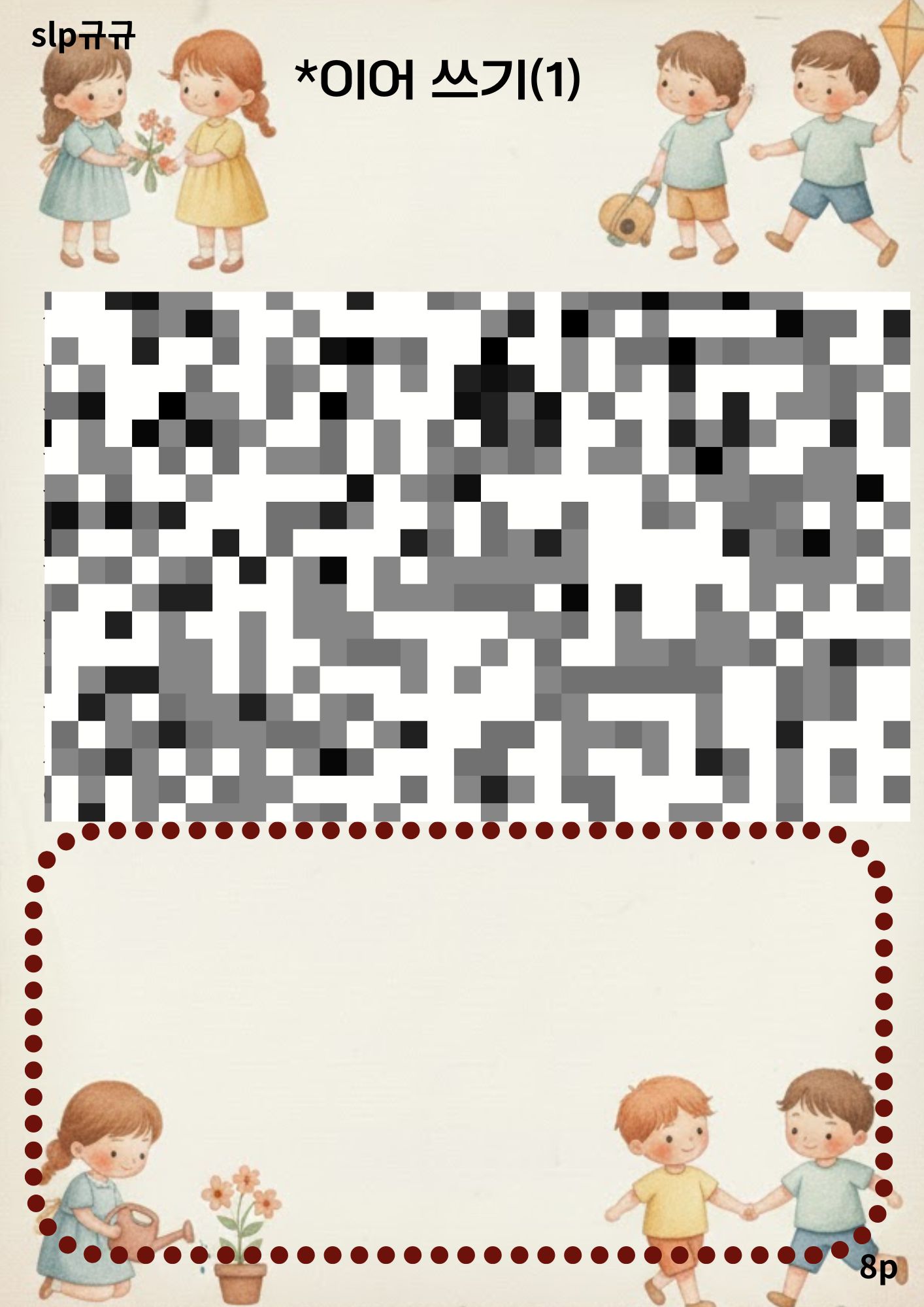 단순 쓰기 활동이 아니라 이해–추론–표현을 하나로 묶은 자료로서 학령기 아동 눈높이에 맞춘 현실적인 문장과 상황을 담았다는 것이 큰 장점!