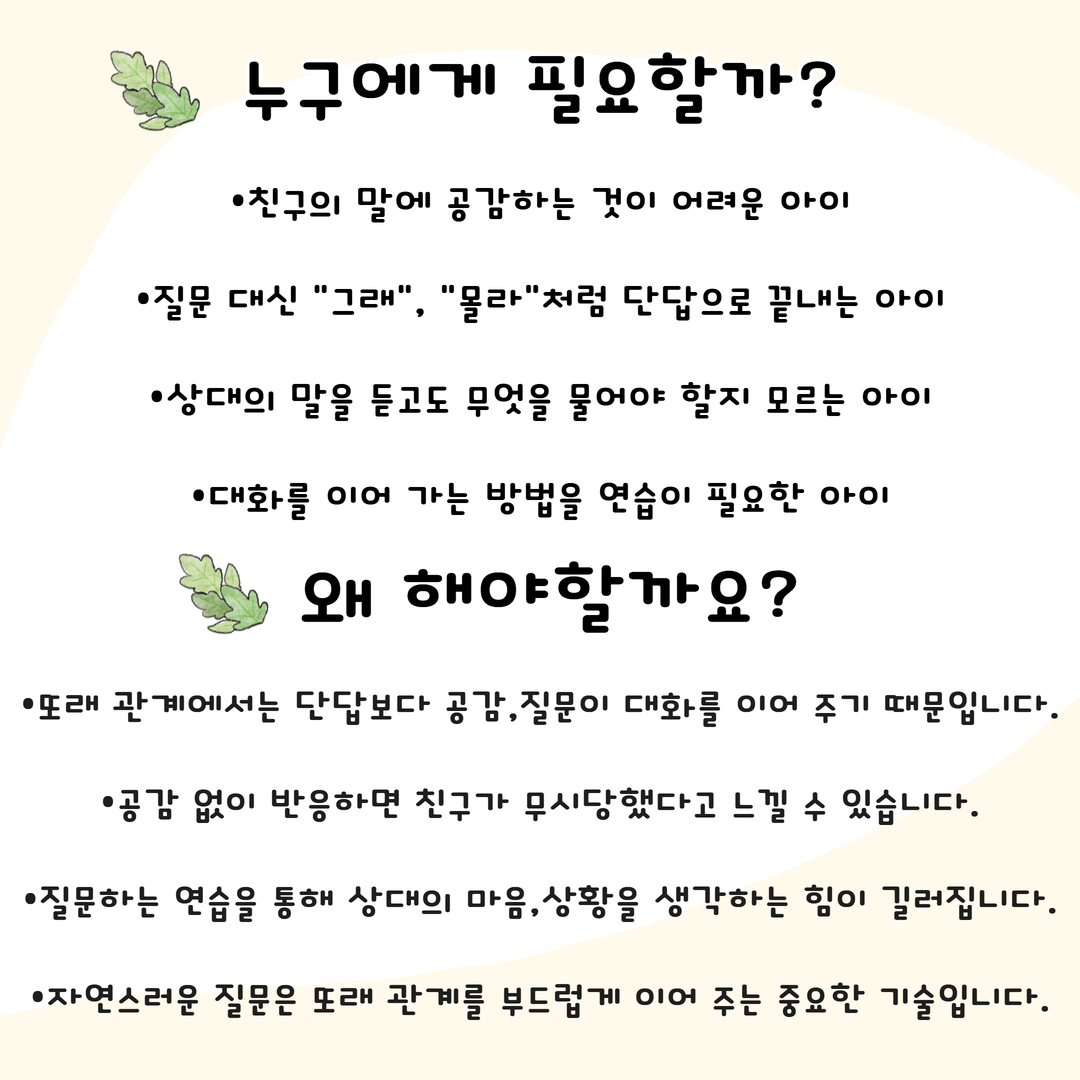 •대화를 이어 가는 방법을 연습이 필요한 아이