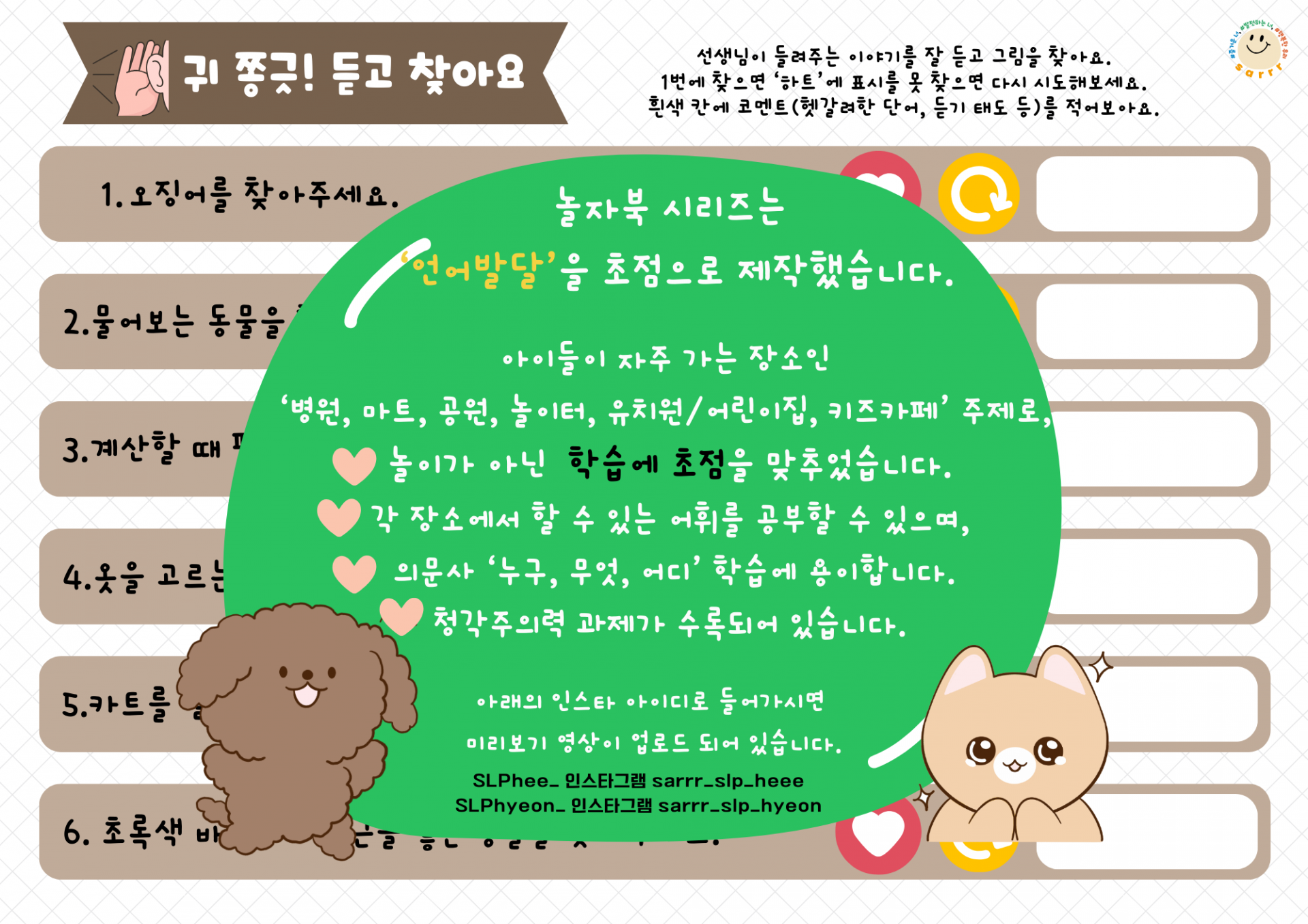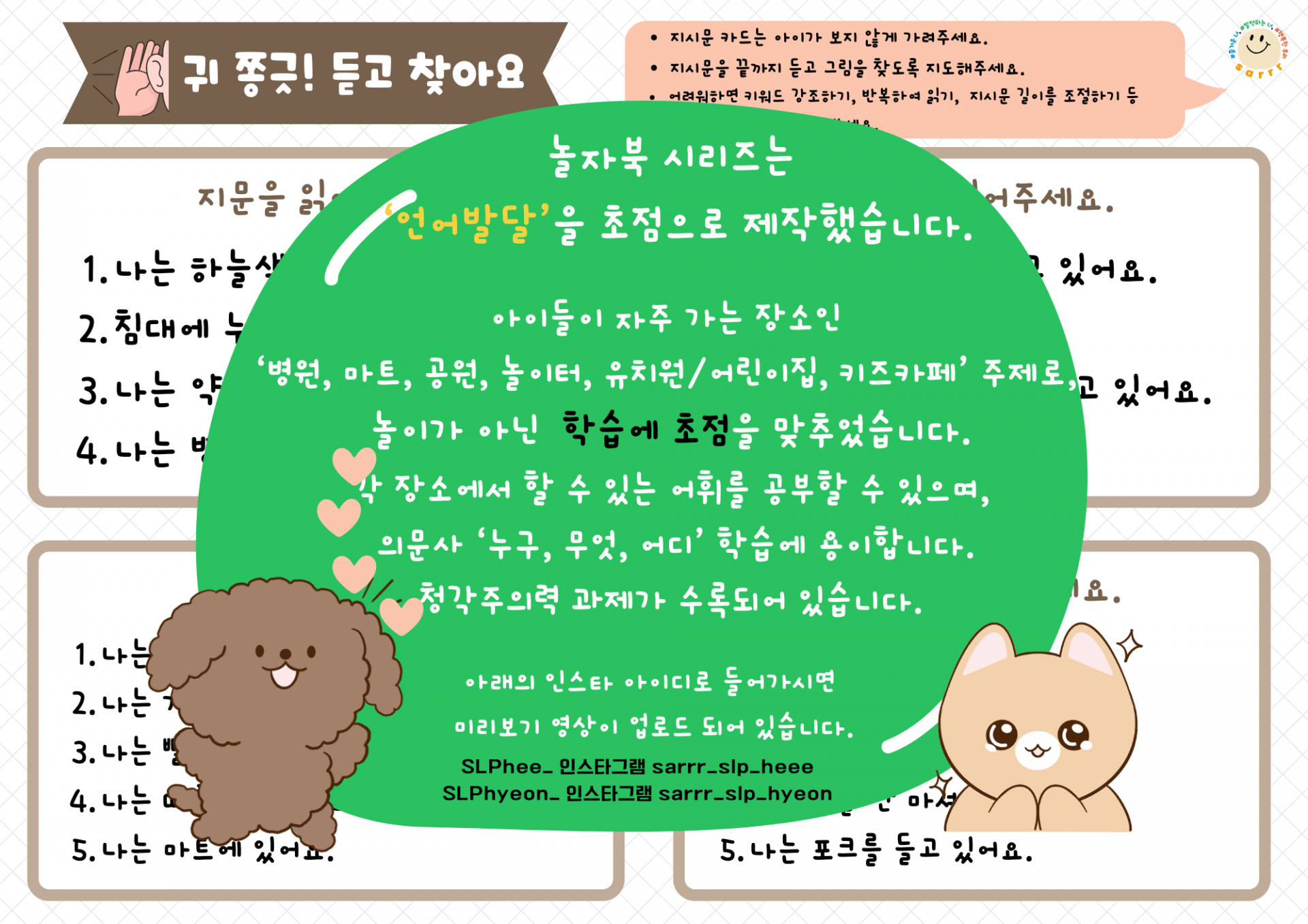 🤩단어~이야기 수준까지 청각 주의력 과제로 활용할 수 있습니다.