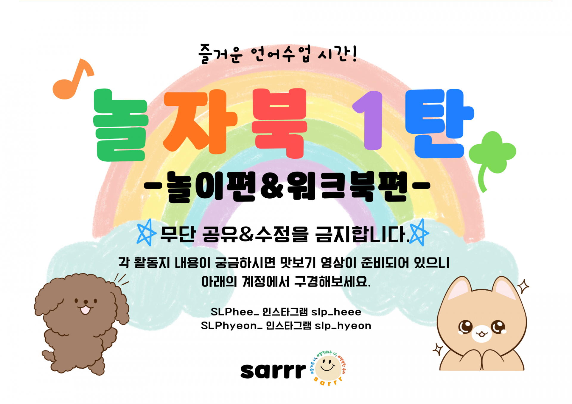 🤩놀이편 105장, 워크북편 150장의 분량 중 수업 시간에 바로 사용할 수 있는 일부분의 자료 34장을 모았습니다 🤩