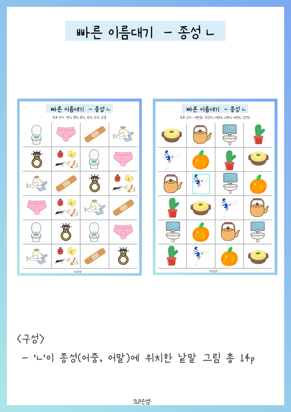 SLP은쌤의 빠른 이름대기3_종성ㄴ 입니다.