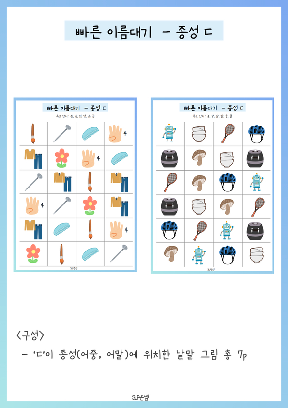 SLP은쌤의 빠른 이름대기3_종성ㄷ 입니다.