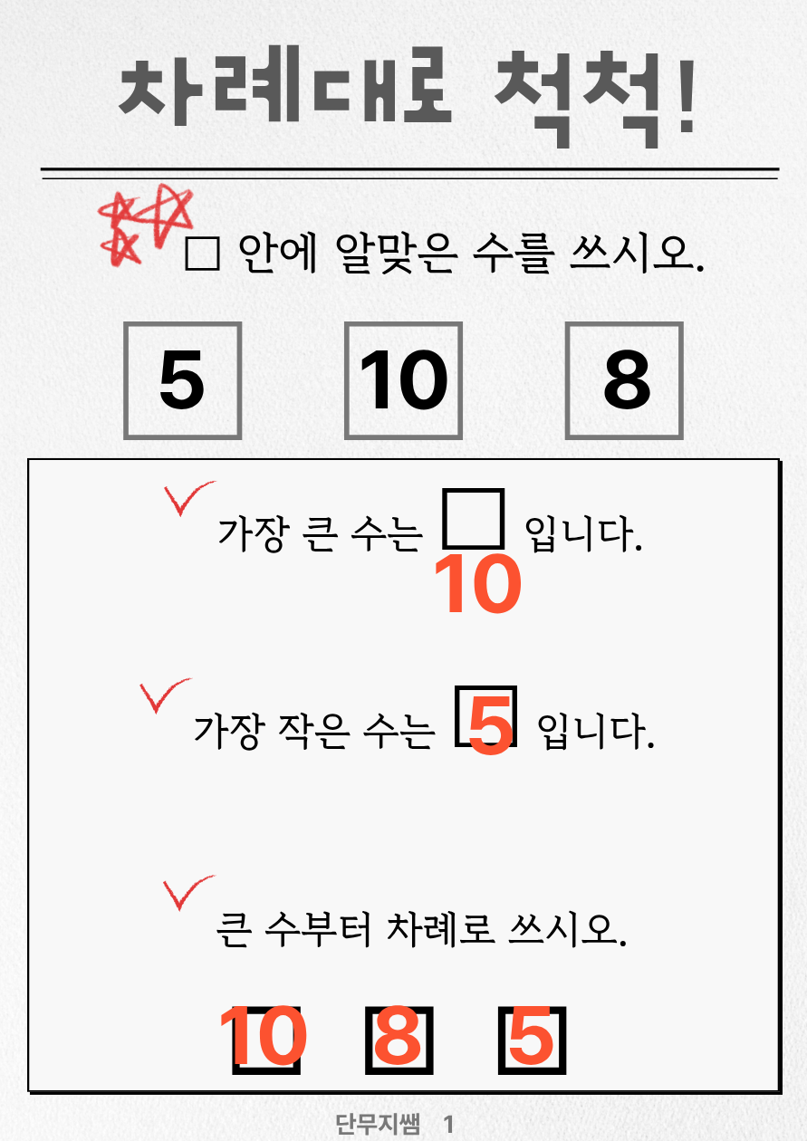 '가장 큰 수'와 '가장 작은 수'를 변별하는 과정에서 기초 수 개념을 확립하고