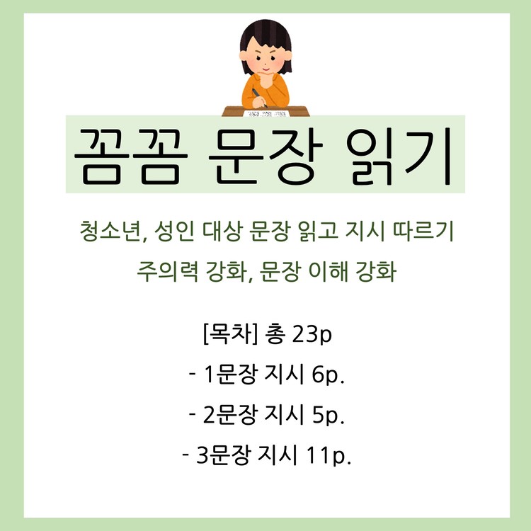 성인과 청소년 대상 1~3문장 읽고 이해하여 지시를 수행하는 활동지입니다!