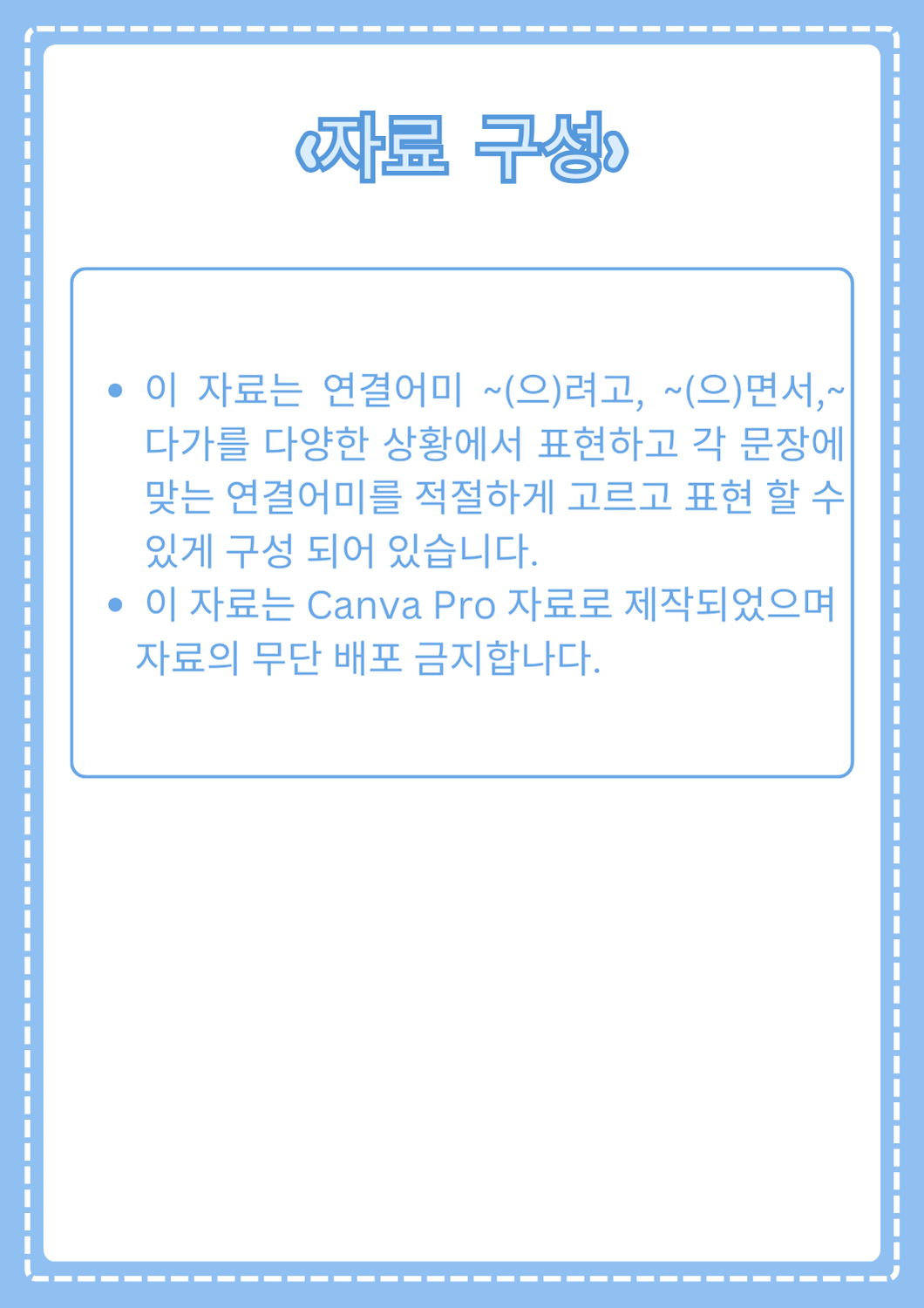 < 공지 & Tip❗ > ✔ 반드시 PDF 전용 프로그램으로 사용하여 파일을 열어주세요. ✔ 구매 자료는 마이페이지에서도 간편하게 다운이 가능합니다. ✔ 디지털 자료의 특성상 다운로드 이후 환불은 불가합니다. ✔ 저작권법에 위반되지 않도록 주의해 주세요. ✔ USB, 클라우드, 컴퓨터 등 두 곳 이상에 저장하시길 바랍니다. |