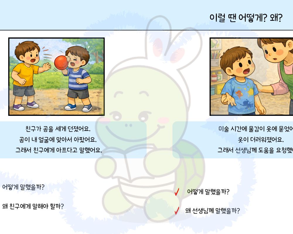 단순히 상황을 설명하는 것에 그치지 않고, 타인의 감정을 이해하고 적절한 해결책을 말로 표현하는 힘을 길러줍니다.