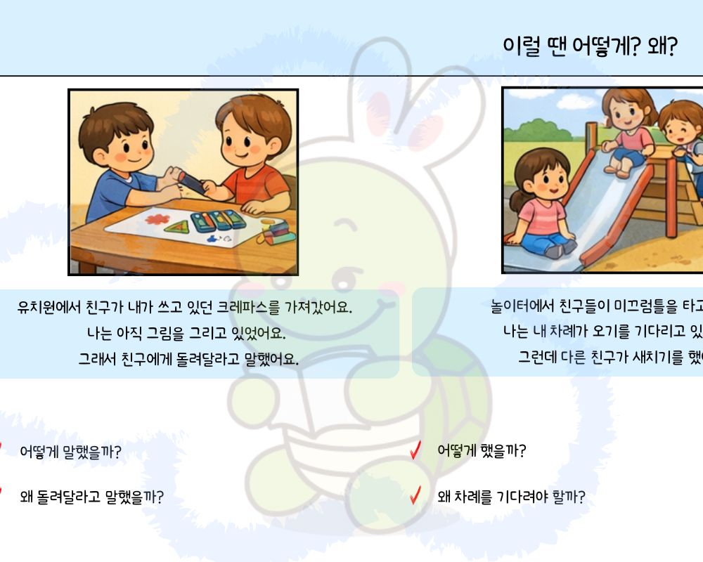 "어떻게 했을까?": 상황에 맞는 적절한 말하기와 대처 행동 유도