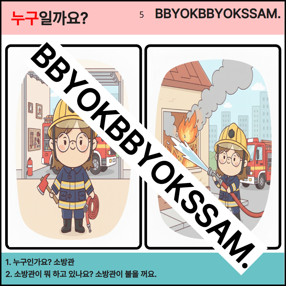 의문사 누구 질문에 대답하기, 직업 35가지, 직업 어휘를 활용하여 구문으로 설명하기 증진을 목표로 제작하였습니다.