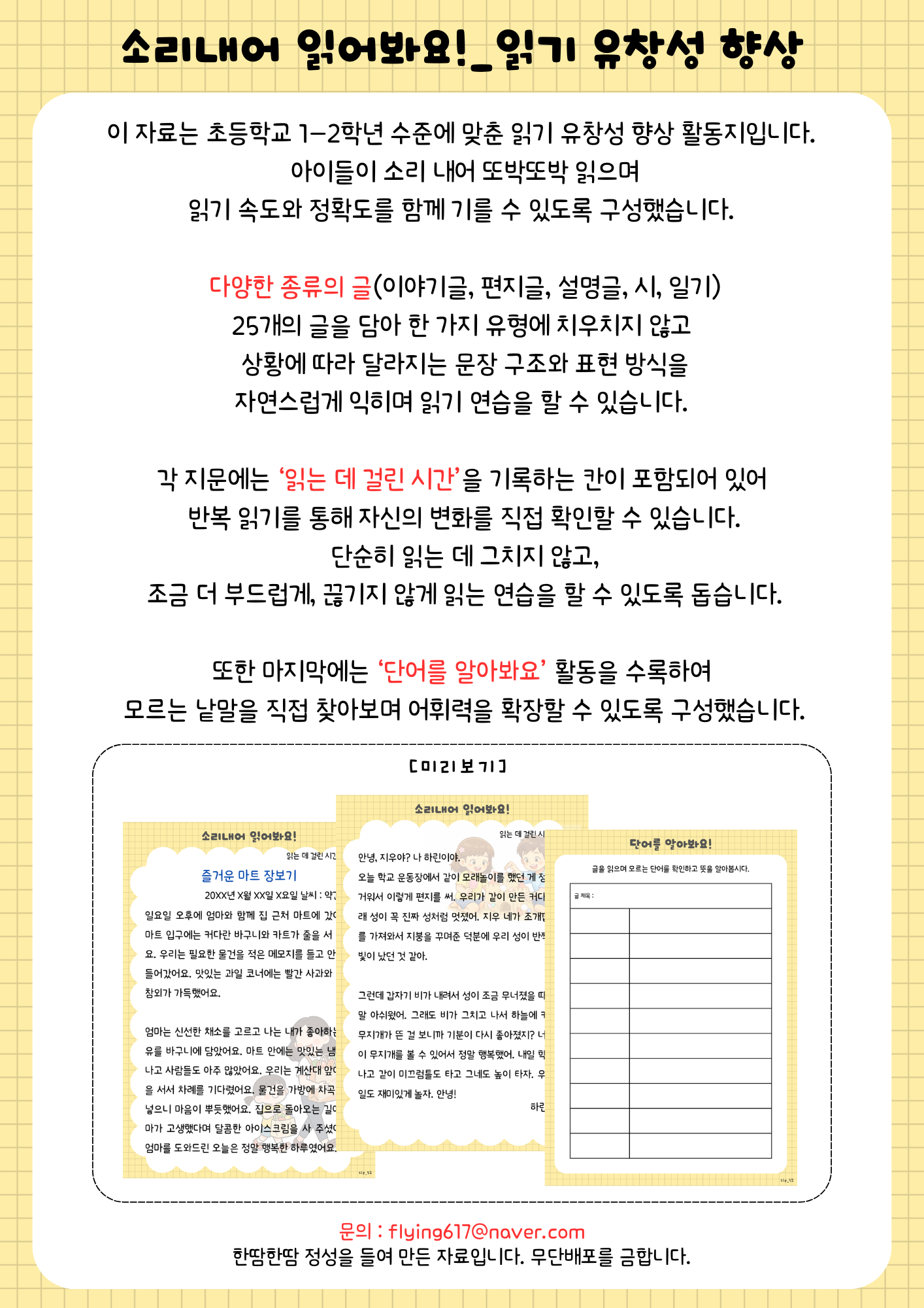 소리내어 읽어봐요!_읽기 유창성 향상(1-2학년) [오이쌤]