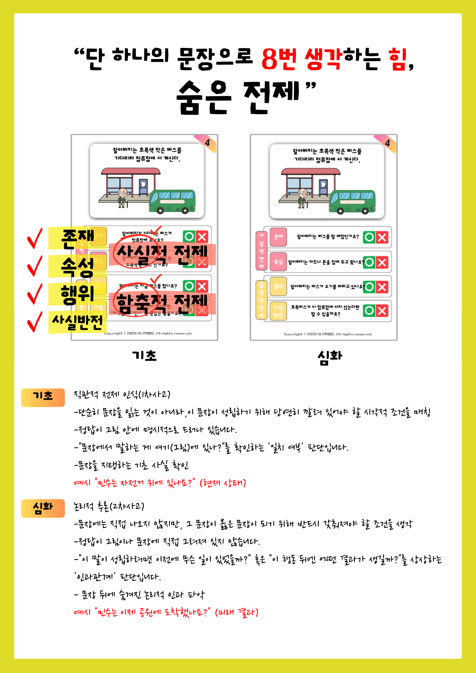 문장 속 숨은 의미 찾기: 전제 조건 훈련 OX