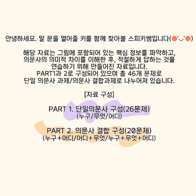 누구,무엇,어디 답하기(핵심정보파악, 의문사 이해, 의사소통, 주의집중) [스피키쌤]